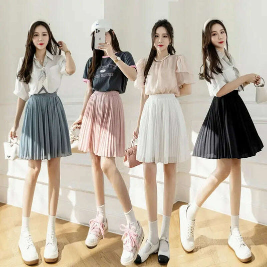 Summer Chiffon Pleated Mini Skirt for Women, High Waist A-Line