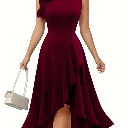 Stylish Solid Color Pleated Tank Dress with Crew Neck