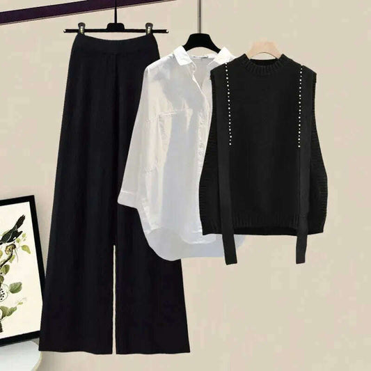 Autumn Winter Knitted 3-Piece Set: Vest, Shirt & Pants