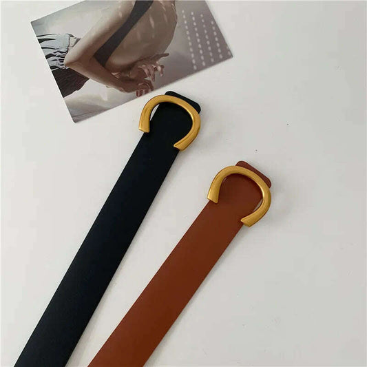 Solid Color Leather Women's Belt with Gold Alloy Buckle
