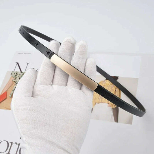 New Fashion Leather Thin Belt for Women with Metal Buckle