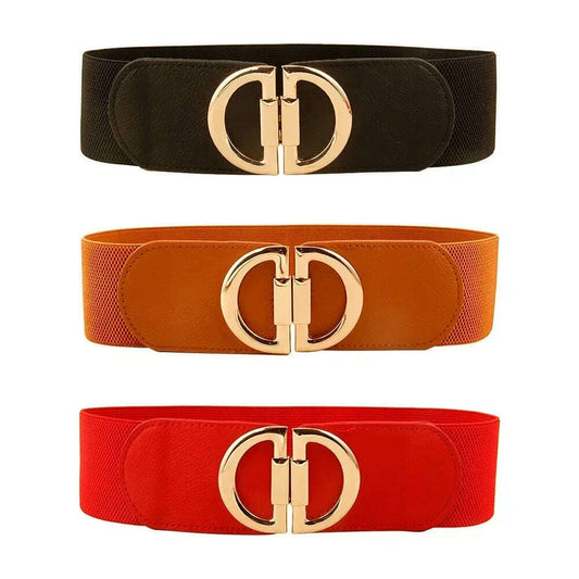 CINESSD Elastic Double Buckle Leather Wide Belt for Women