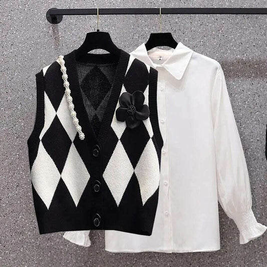 2024 Beaded V-Neck Diamond Plaid Cardigan Vest for Women