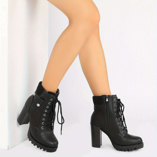 High Chunky Heel Lace-Up Combat Ankle Boots