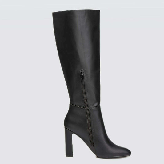 Women's Knee-High Boots with Pointed Toe, Cone Heel, Zip Closure, and Fabric Upper