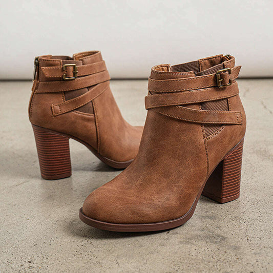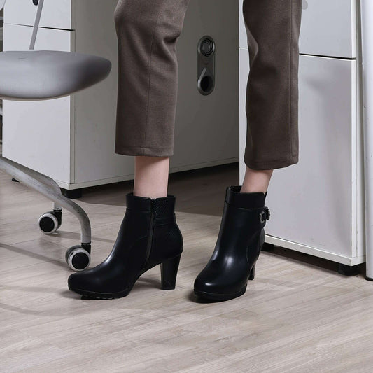 Women's Chunky High Heel Ankle Boots Close Toe Fall Heeled Booties Shoes, Autumn Winter Boots, fit spring, summer, autumn and winter