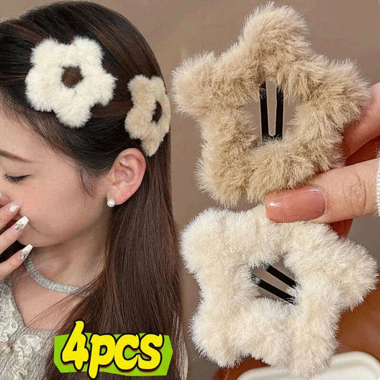 Winter Plush Y2K Star Hair Clips – Fluffy Fashion Hairpins