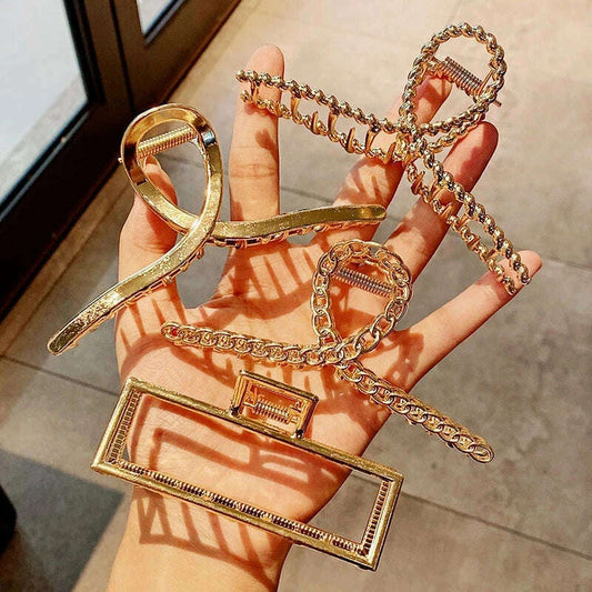 2024 Elegant Gold & Silver Geometric Metal Hair Claw