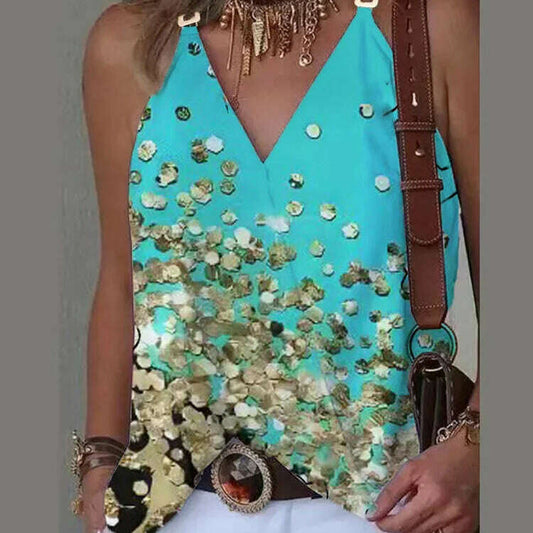 Office Lady Chain Print Tank Top – Casual Sleeveless Vest