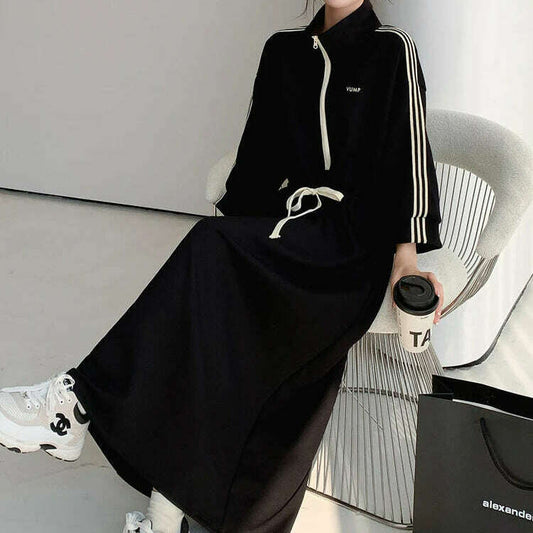NYFS 2024 Autumn Korea Woman Letter Print Long Sleeve Dress