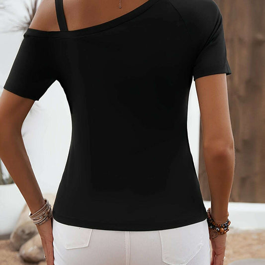 Ladies' off shoulder fashionable casual solid color T-shirt top