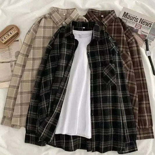 JMPRS Vintage Plaid Shirt Women Autumn Oversize Button-Up
