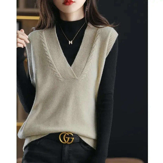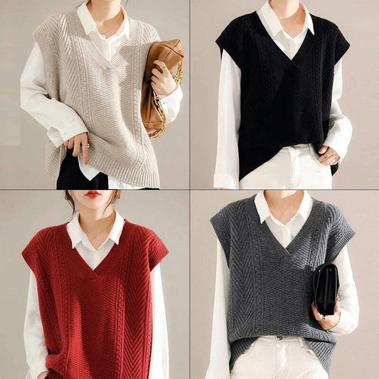 Korean Knitted Sweater Vest – V-Neck, Sleeveless, Loose Pullover