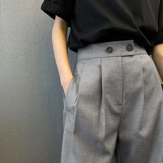 Korean Office Suits Shorts – High Waist, Double-Button, Knee-Length