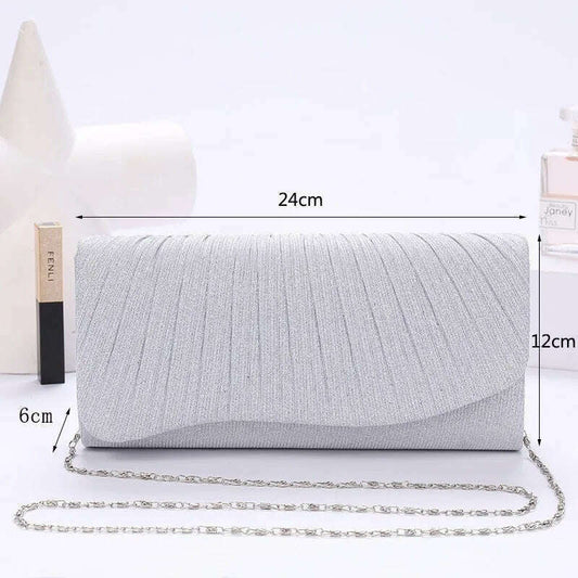 Glitter Envelope Handbag - Silver Chain Mini Crossbody