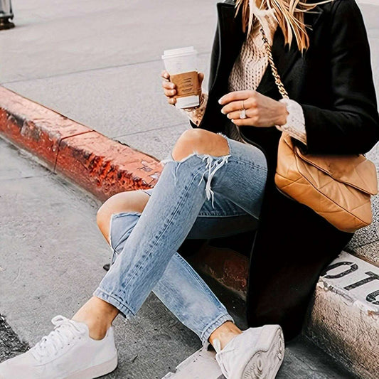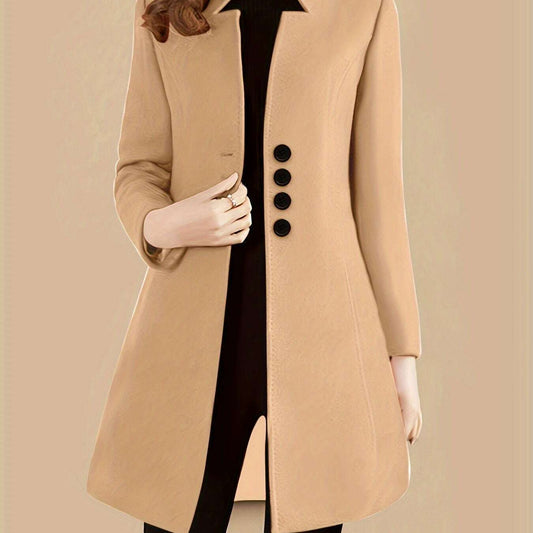 Women's Chic Solid Single-Breasted Coat, Long Sleeve