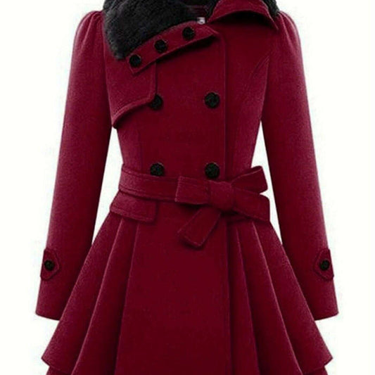 Women's Winter Double-Breasted Pea Coat with Faux Fur