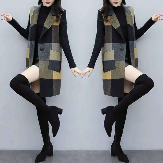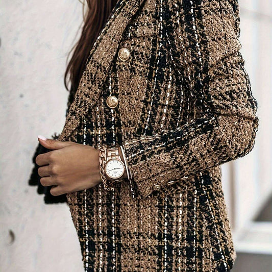 Elegant Plaid Tweed Double-Breasted Blazer for Women