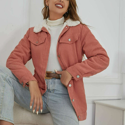 Women's Corduroy Sherpa Lined Button-Up Trucker Jacket