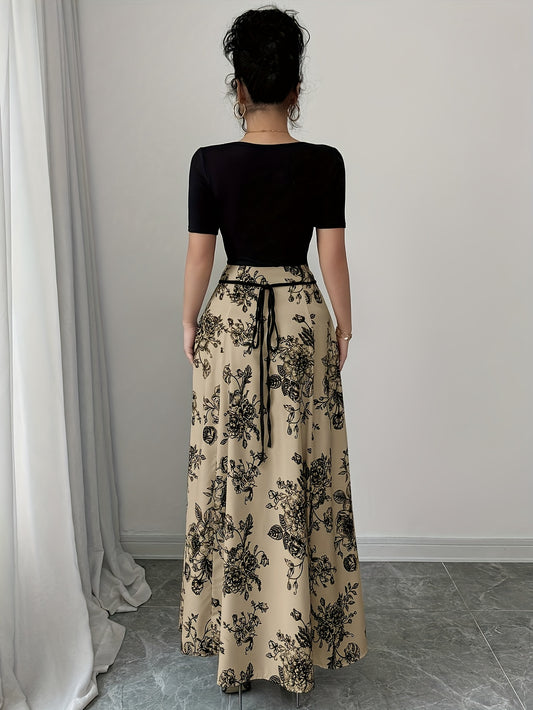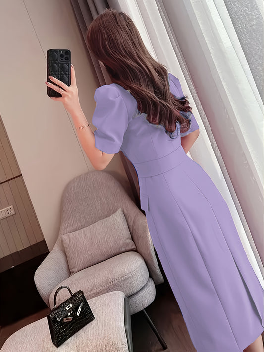 Retro Square Neck Short Sleeved Printed High Waisted And Stylish Elegant Dress