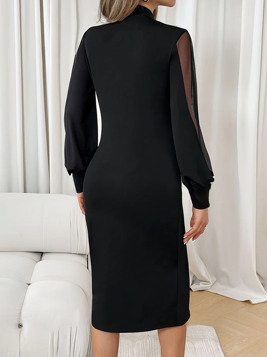 Articat Elegant Mesh Patchwork Long Sleeve Bodycon Party Club Evening Dress Sexy Double Layer Perspective Vestido Autum Clothing
