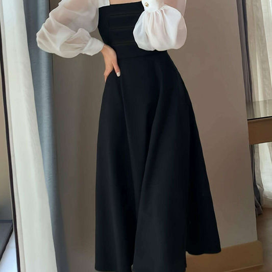Elegant Black Organza A-Line Dress β Vintage French-Inspired