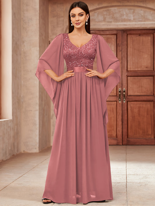 Deep V-Neck Lace Gown β Fit & Flare Sequin Dress