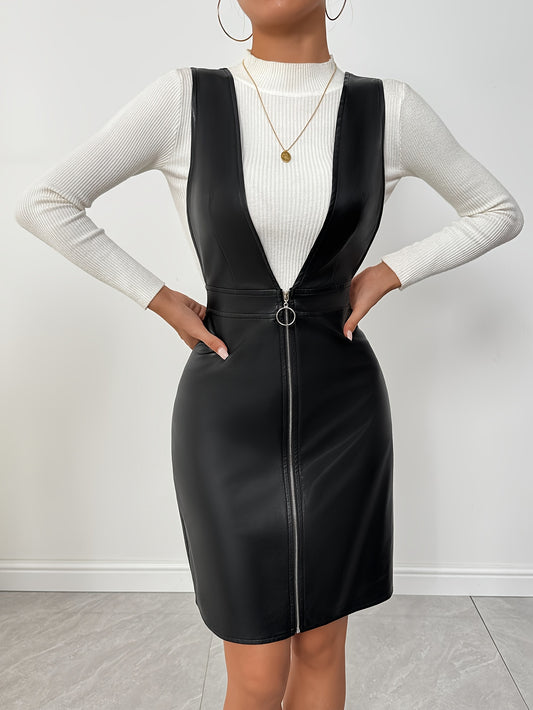 Elegant PU Leather Pencil Dress β Sleek & Stylish Workwear