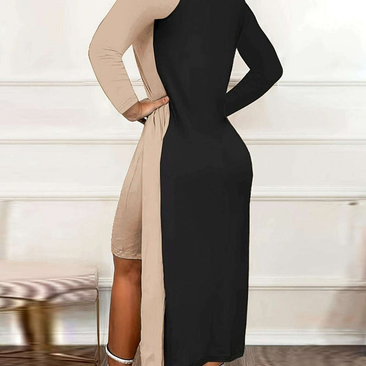 Vibrant Color Block Midi Dress with Split Thigh for Women