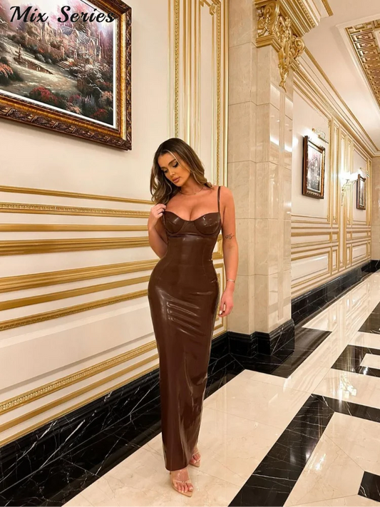 PU Leather High-Waist Sleeveless Long Dress - 2024