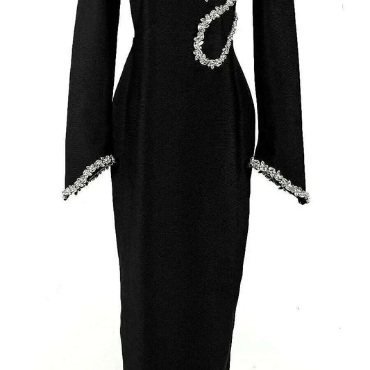 GPBD Black Slim Beaded Long-Sleeve Maxi Bandage Dress