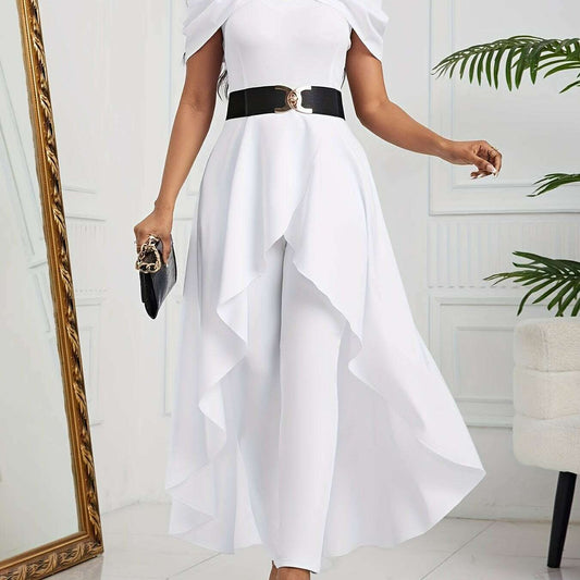 Chic Cold Shoulder Jumpsuit with Flowy Overskirt