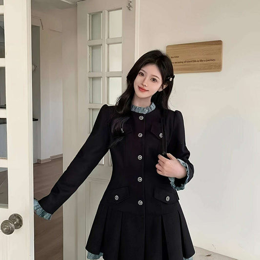 Autumn & Winter Pleated Stand-Up Collar Midi Dress