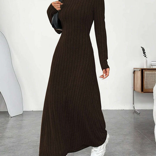 Elegant Ribbed Knit Dress with Umbrella Hem for Women