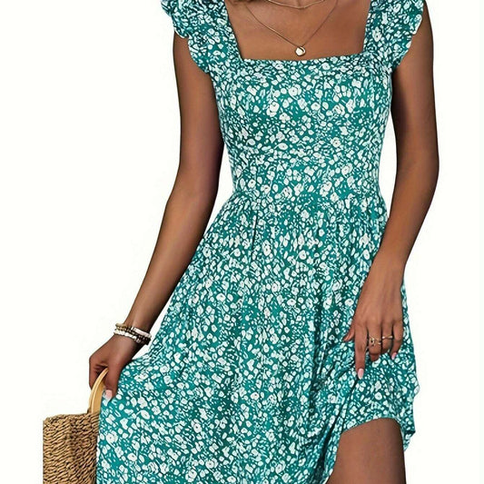 Elegant Women's Floral Print Crewneck Maxi Dress