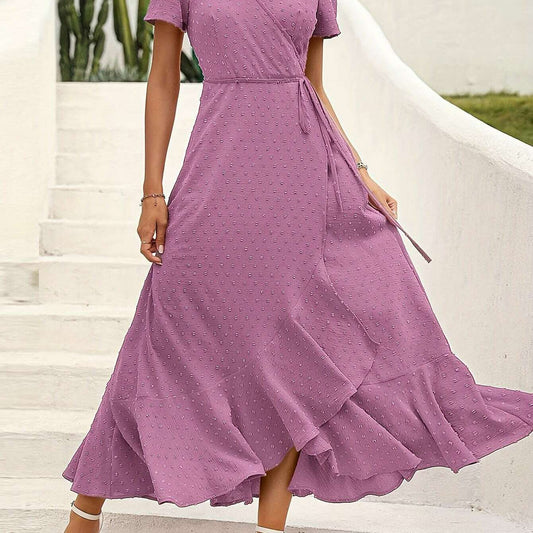 Elegant Women's Swiss Dot Surplice Neck Maxi Dress