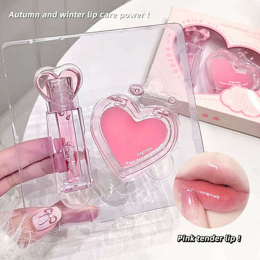 2pcs Heart-Shaped Lip Treatment Set: Nourishing Lip Mask + Glossy Lip Oil