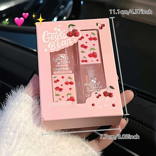 2pcs Gege Bear Cherry Flavored Lip Care Set: Moisturize & Nourish