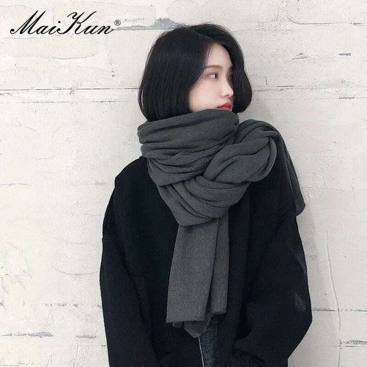 Maikun Thick Warm Scarf For Women Pure Color Ladies Imitation Cashmere Black Scarf Female Winter To Increase Ahawl