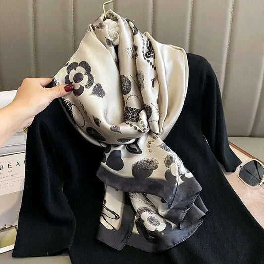 Coffee Color Large Silk Soft Scarf Women Stylish Print Long Shawl Handkerchief Summer Elegant Travel Wrap Hot 180x90cm