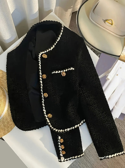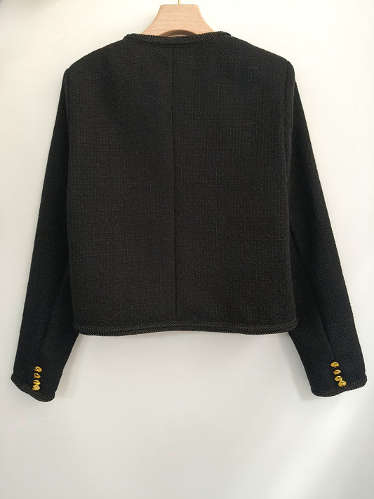 Women'S Tweed Jacket - Elegant Black Blazer-like Coat with Golden Buttons, Structured Office & Everyday Outerwear for Fall/Spring, Chic Work Party Jacket by SCACTO, Ladies Jacket, Casual Wear, Sophisticated Design, Textured F