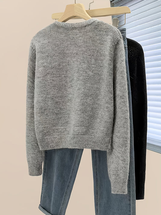 Women's 2025 New Beaded Cardigan Sweater - Soft Round Neck Long Sleeve Button Front Closure with Beaded Collar & Sleeve Trim, Machine Washable Winter Sweater for Fall and Winter, Casual to Semi-Formal Outfits