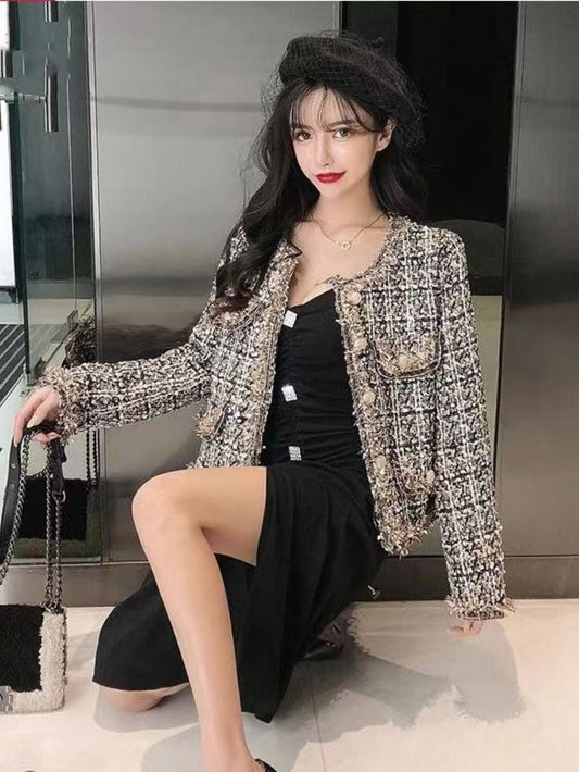 The 2025 Autumn And Winter New Xiaoxiang-style Sub-coat For Women Is A Short Piece With A White Collar. It Is Versatile For Commuting And Elegant And Fashionable