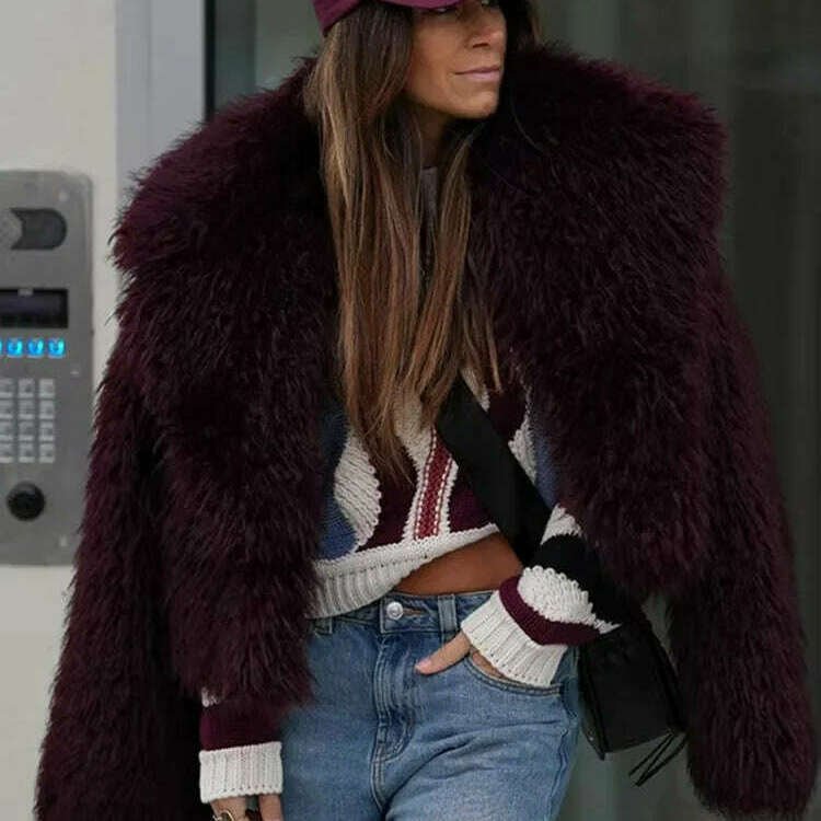 Stay warm and chic this winter with this fashion-forward faux fur jacket. Featuring a loose, long-sleeve design with a turn-down lapel collar, this open-stitch cardigan is perfect for layering over your favorite outfits. Crafted from high-quality man-made fibers, this jacket offers a luxurious look and feel while keeping you comfortable during the colder months.