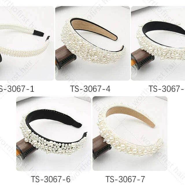 This chic hairband features a sweet style with a beaded pearl design and is made of skin-friendly chiffon and plastic material, ensuring comfort and elegance.