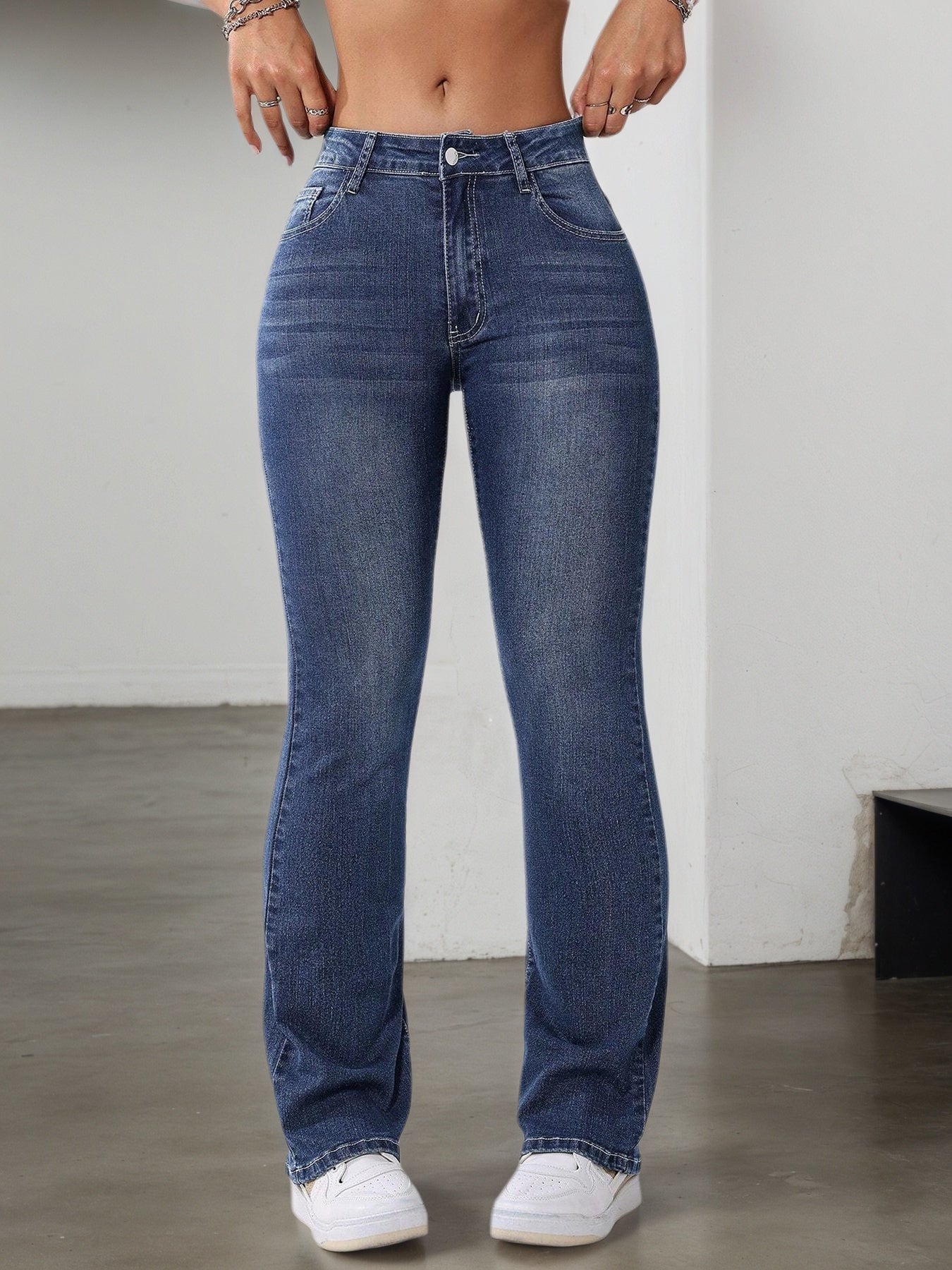 Women'S Stretchy Casual Flare Jeans - Versatile High-Waisted Bell Bottoms with Slash Pockets, Light Wash Blue, Comfortable & Stylish for All Seasons, High Waisted Jeans, Allseason Fashion, Elegant Design, Durable Fabric